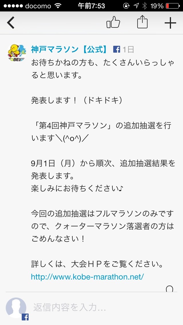 なんだけど、そうじゃなくて神戸マラソン2014の追加抽選の発表日!